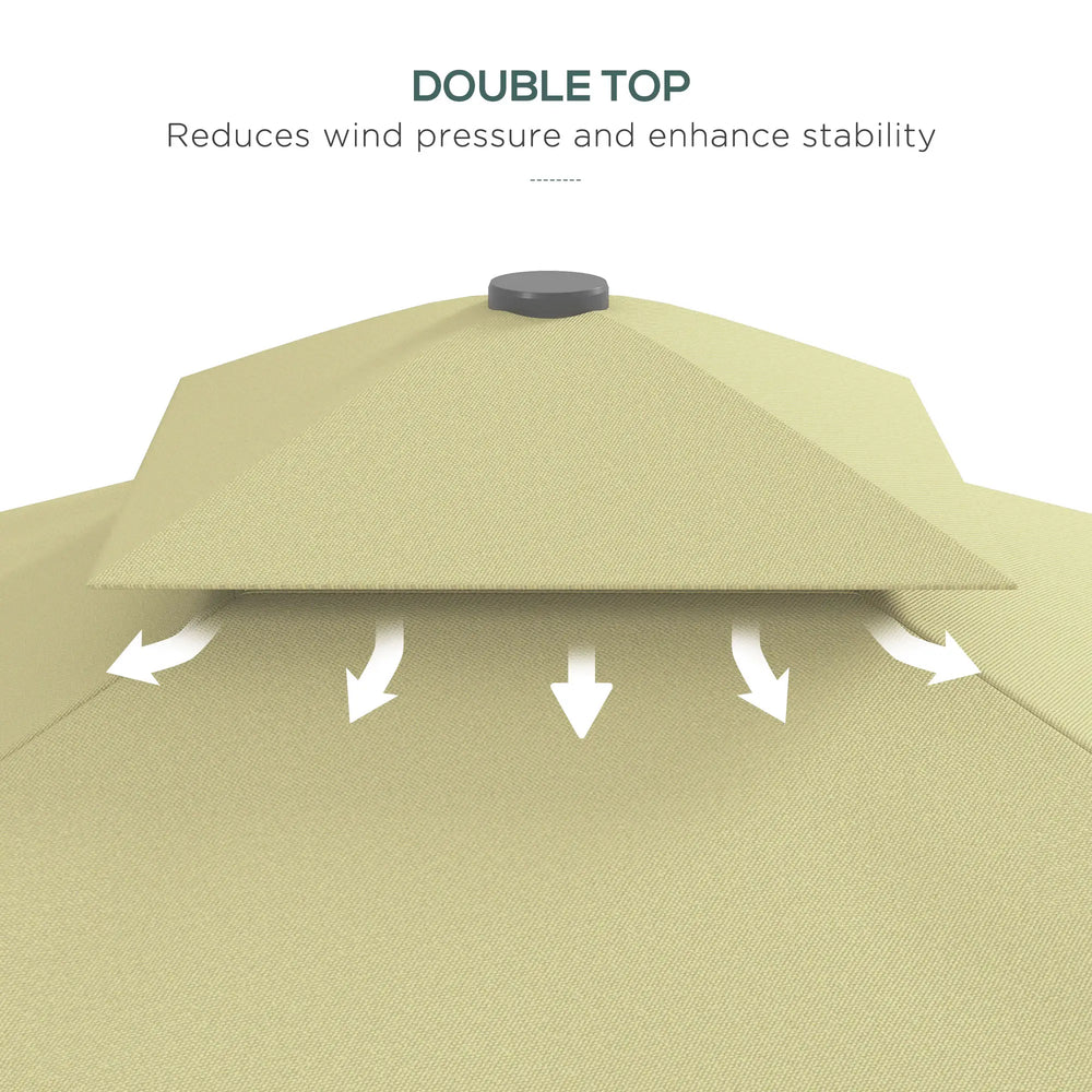 Outsunny 2.5m Square Double Top Garden Parasol Cantilever Umbrella with Ruffles, Beige