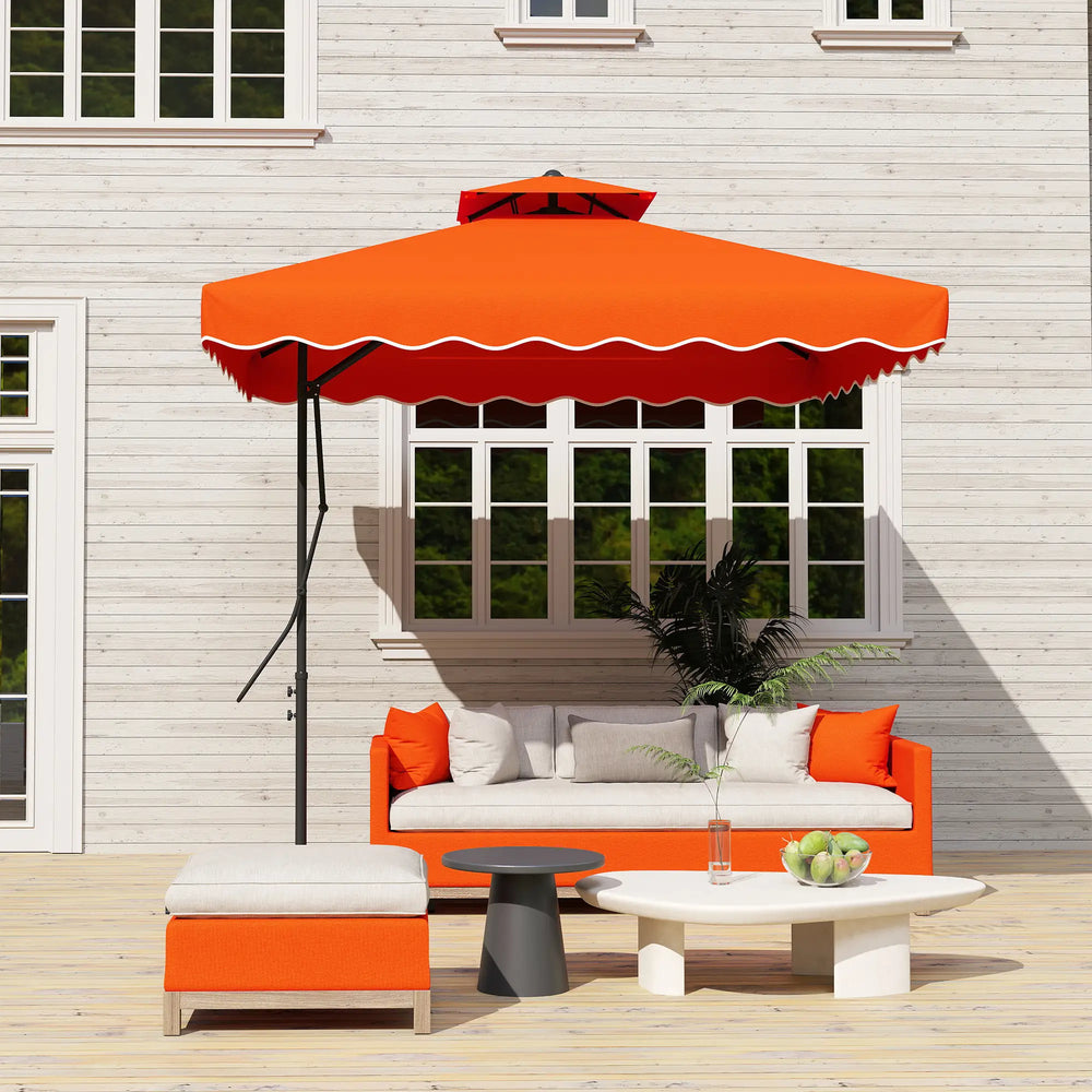 Outsunny 2.5m Cantilever Parasol with Easy Lever, Square Double Top Garden Parasol Umbrella with Ruffles and Cross Base, Overhanging Outdoor Sun Shades, Orange is backordered and will ship as soon as it is back in stock.