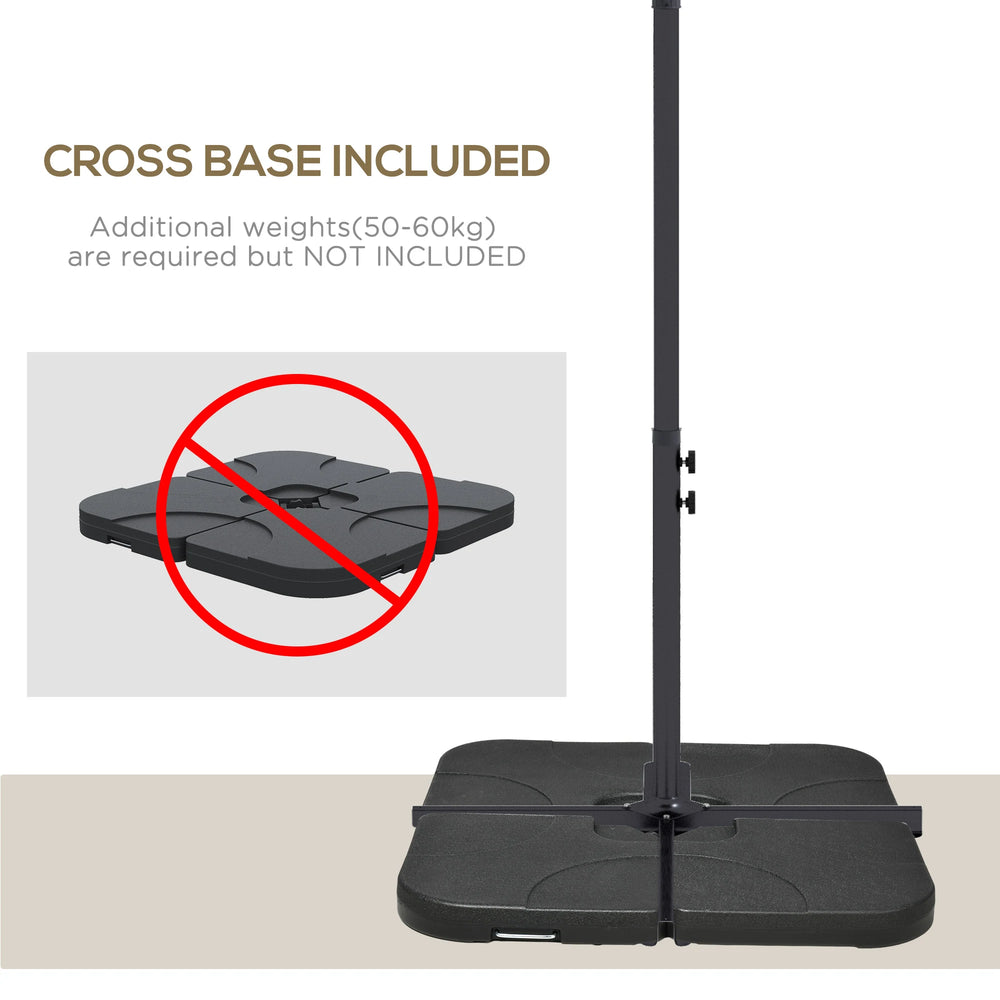 Relax with protective shade in style, thanks to this Outsunny cantilever parasol. A powder coated steel pole for a strong core, with six metal ribs on the canopy for additional support. The crank handle opens and closes the canopy smoothly and easily. Comes with a cross base - 60kg weight is required.