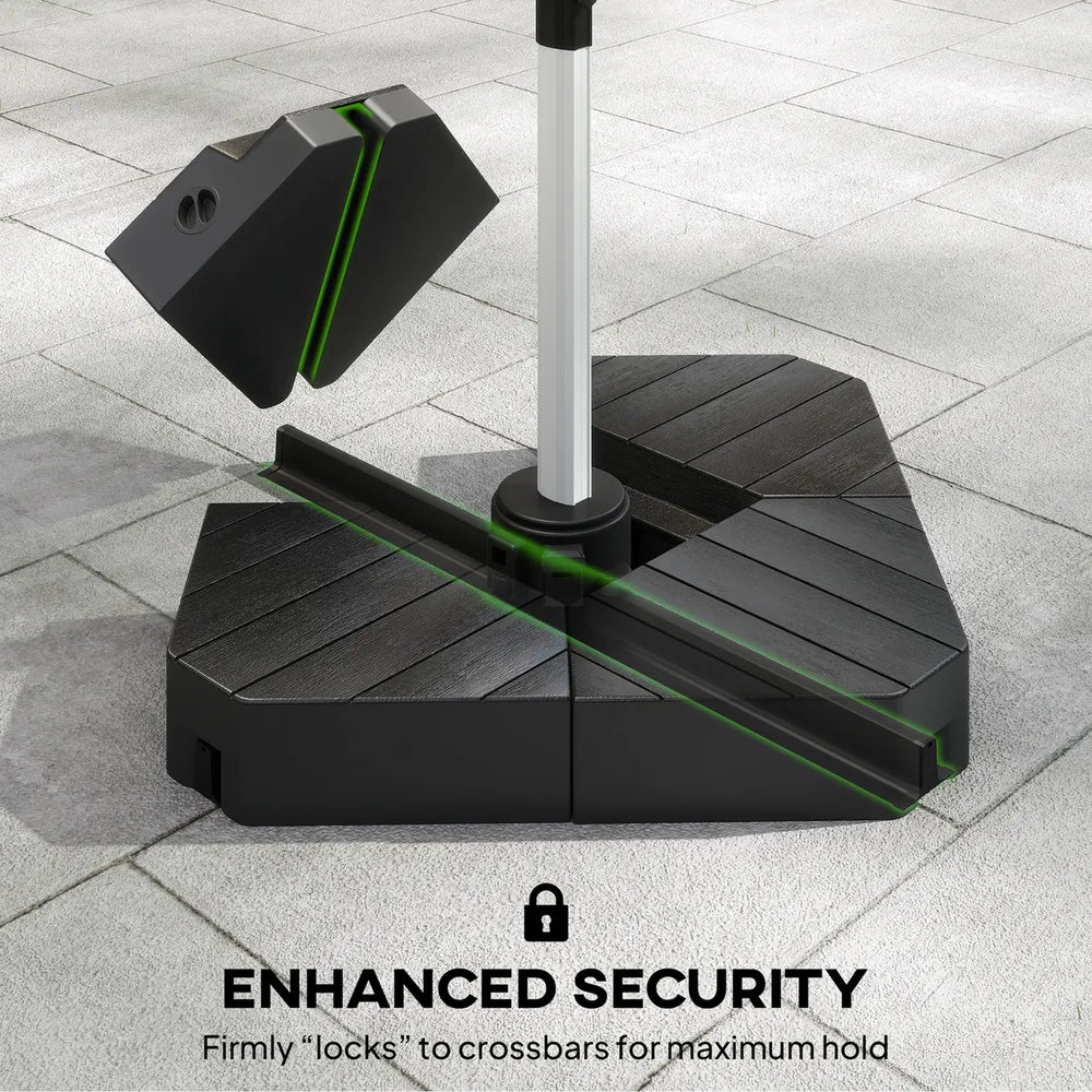 Ensure Outsunny cantilever parasols stand firmly in place, day and evening long: get our cantilever parasol base weights. They are made from HDPE plastic, tough enough for outdoor use. Each piece feature a filling port and screw cap so that you can fill it with water or sand easily. When empty, these parasol bases are light and convenient to carry around. Create your own oasis under the shade with a little help from us.