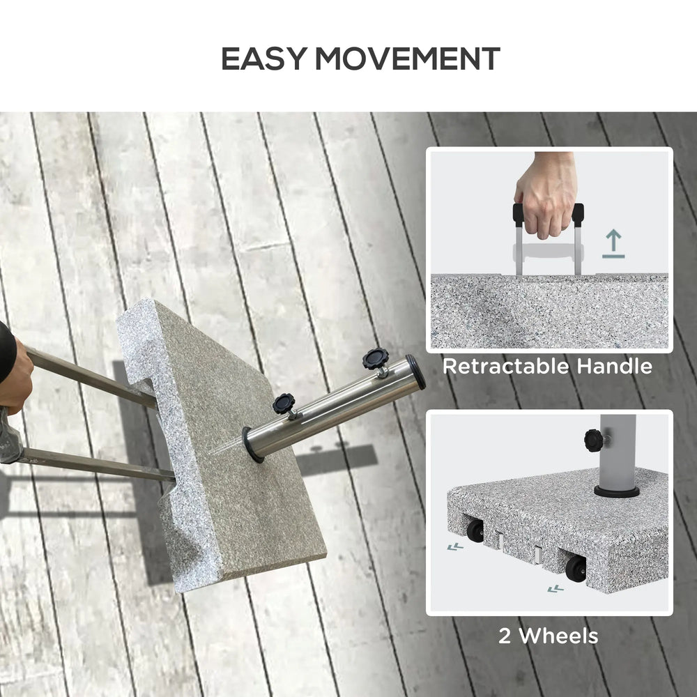 Outsunny Granite Parasol Base, 28kg Heavy Duty Square Umbrella Stand with Wheels, Retractable Handle, Stainless Steel Tube, Grey is backordered and will ship as soon as it is back in stock.
