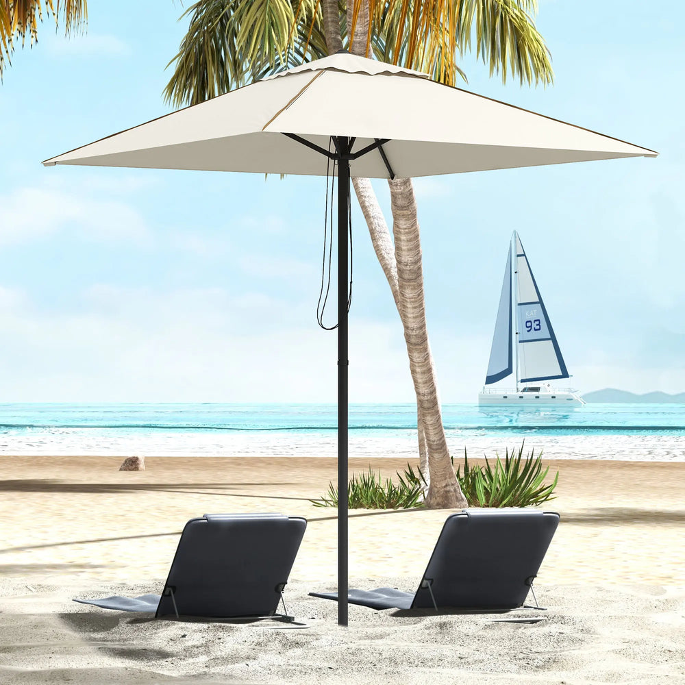 Outsunny 215cm Square Canopy Parasol, with Contrast Piping - Beige/Brown