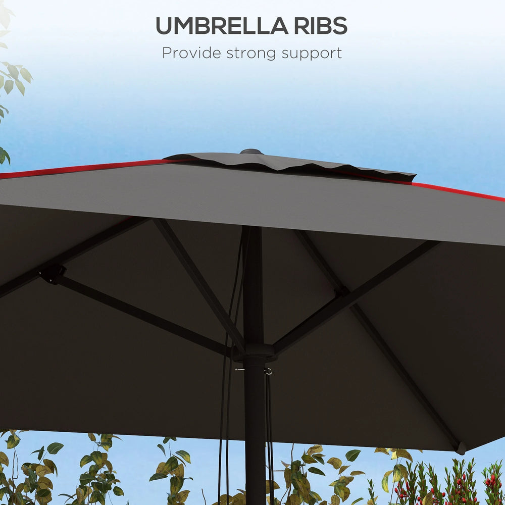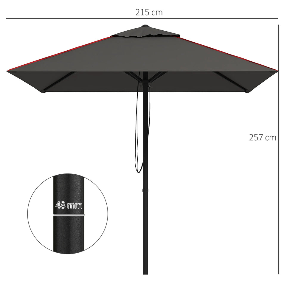 Outsunny 215cm Square Canopy Parasol, with Contrast Piping - Grey/Red