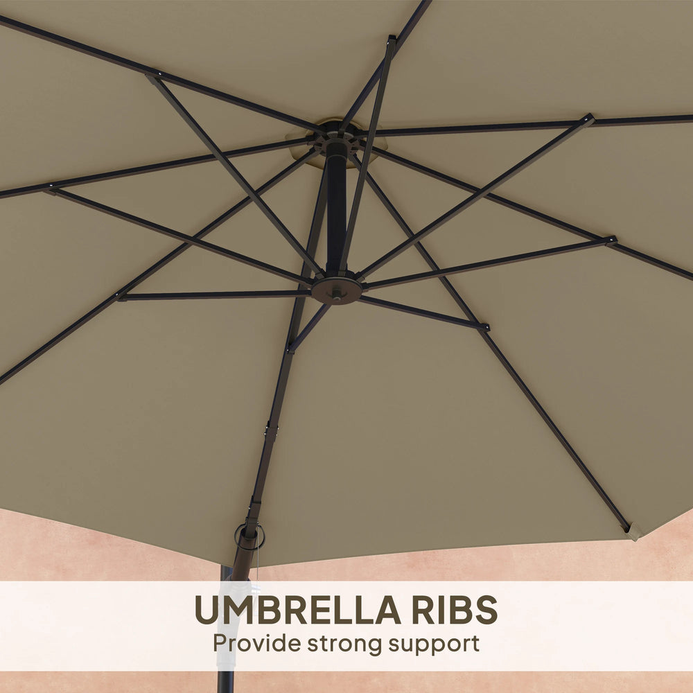 Outsunny 3(m) Wall-Mounted Parasol Shade, with Handle - Khaki