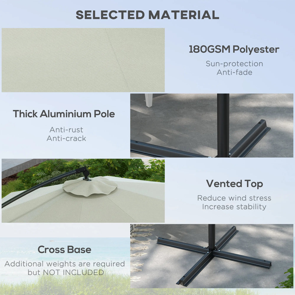 Outsunny 3(m) Offset Cantilever Parasol Umbrella, with Cross Base - Cream