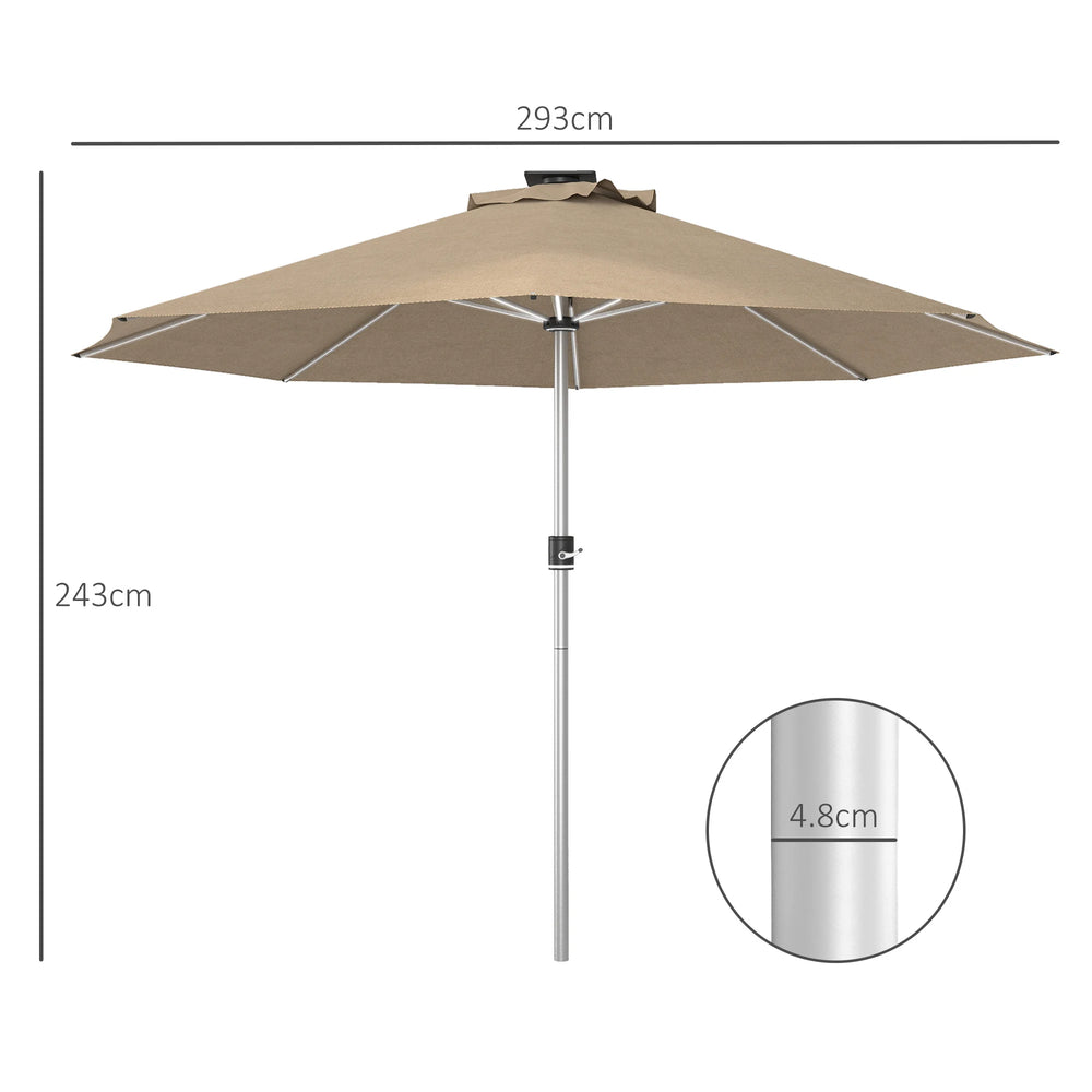 Outsunny 3m Parasol, with Solar-Powered LED Lights - Khaki