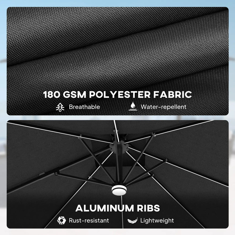 Outsunny 2.5m Cantilever Parasol with Solar Powered LED Lights, 360 Rotation, Tilt Adjustment, Crank Handle, Dark Grey