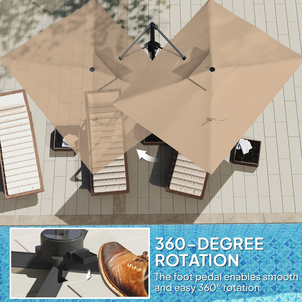- Effortless shade control: This cantilever parasol with base included features a smooth hand-crank system for easy opening and closing, plus five tilt angles and a 360 rotating base (controlled by a foot pedal) for optimal shade throughout the day.