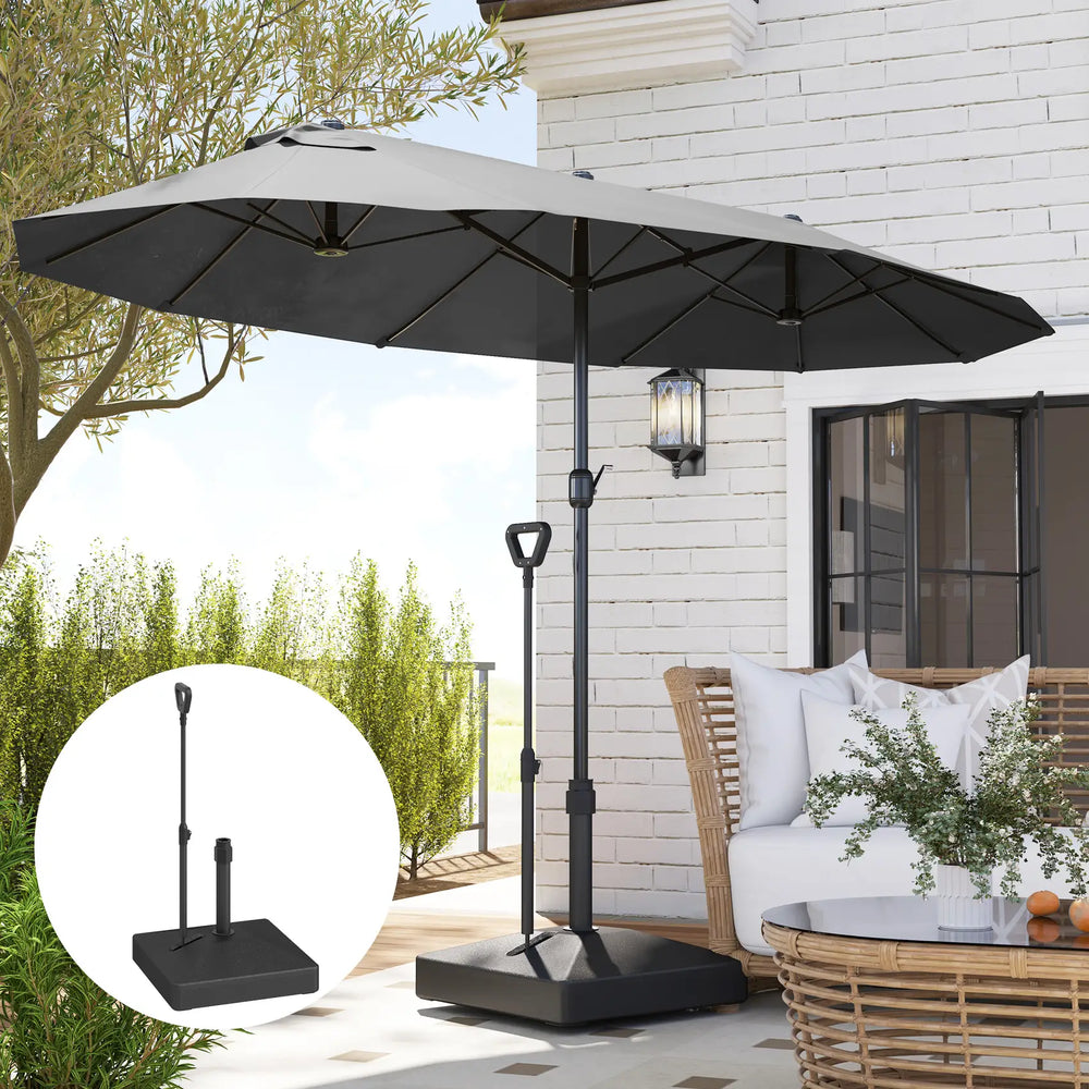 Ensure your parasol is always held firmly in place with the Outsunny parasol base on wheels. Made from strong anti-ageing HDPE plastic, it needs to be filled with sand or water to increase the total weight, keeping stability outdoors. Easy to move it with the adjustable wheels and handles to any locations. Combine the heavy parasol base with a garden parasol and create your own oasis under the shade.