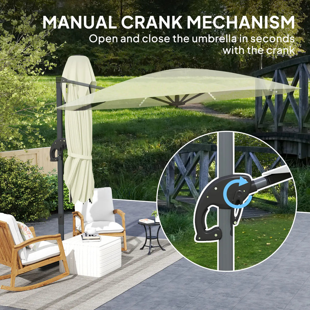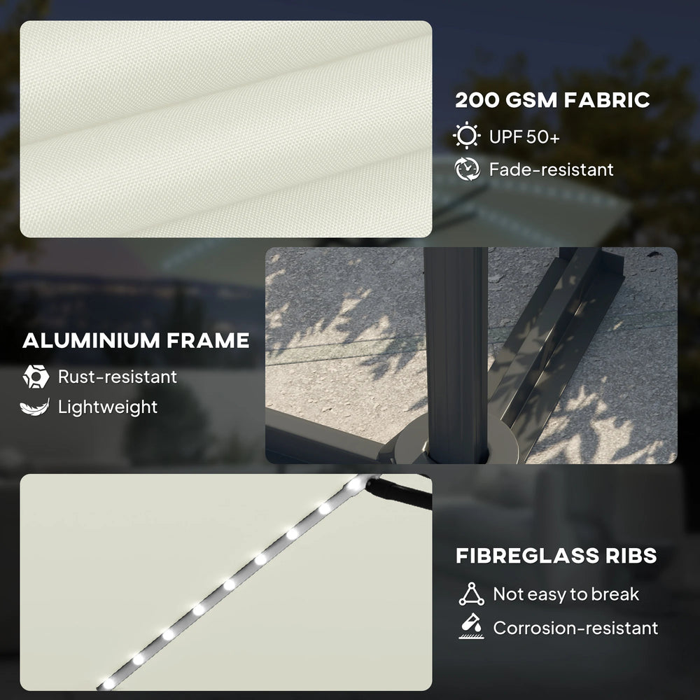 Outsunny 3(m) Cantilever Garden Parasol with Solar Powered Lights, Crank Handle & Cross Base, UPF 50+, 360 Rotation, Cream