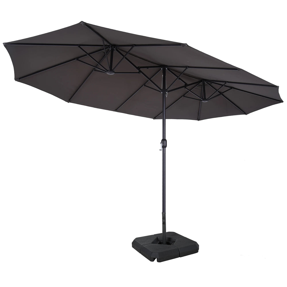 Outsunny 4.6m Garden Parasol Double-Sided Sun Umbrella Patio Market Shelter Canopy Shade with Weight Base, Grey is backordered and will ship as soon as it is back in stock.