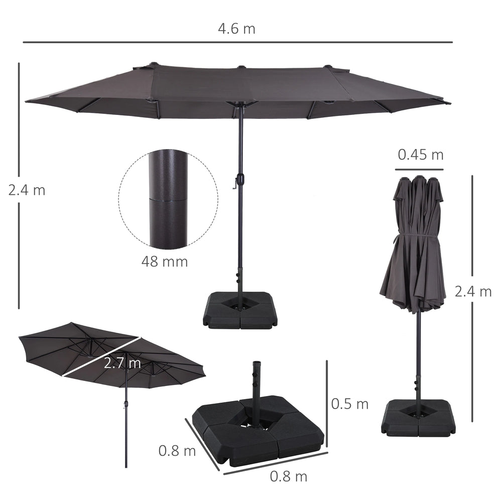 Outsunny 4.6m Garden Parasol Double-Sided Sun Umbrella Patio Market Shelter Canopy Shade with Weight Base, Grey