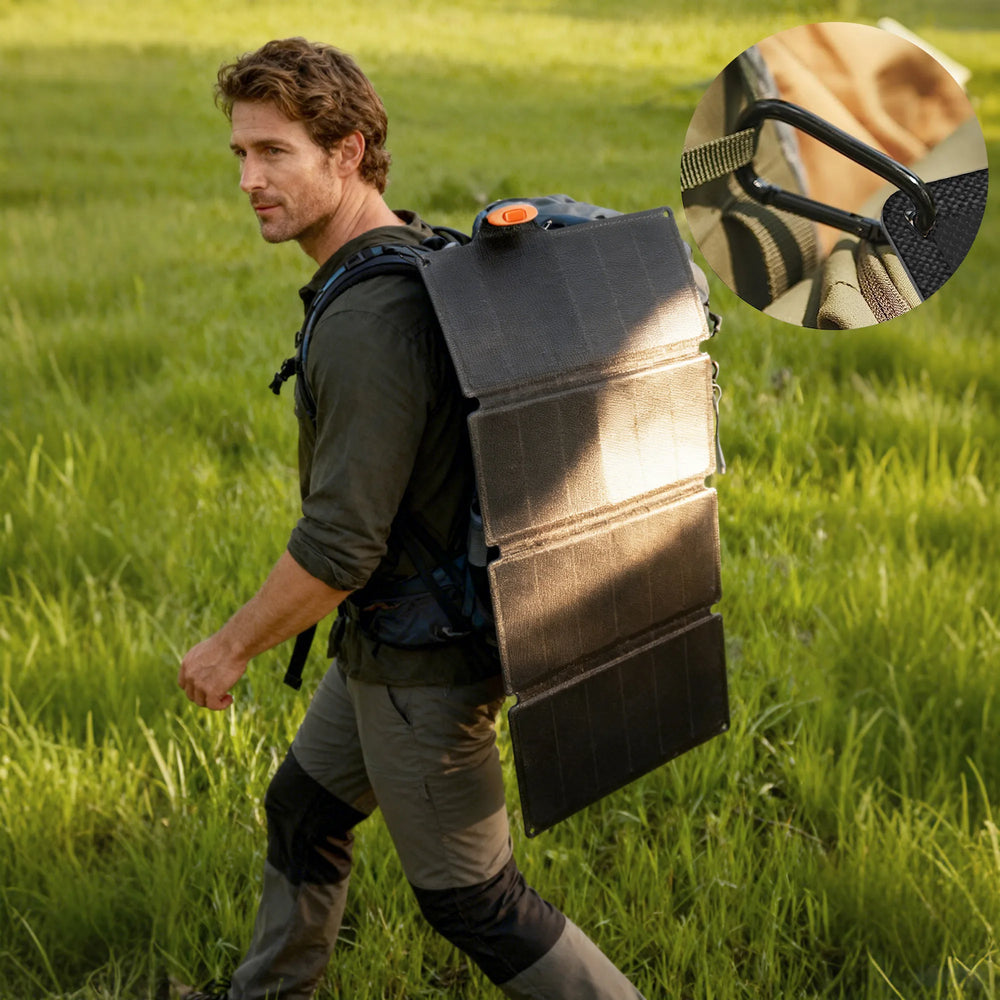 - Folding design with Carabiner: Folding down to 27.9 x 20 cm, it slips easily into a rucksack or attaches via the included carabiner. Charge while hiking, climbing, or camping without adding bulk to your gear.