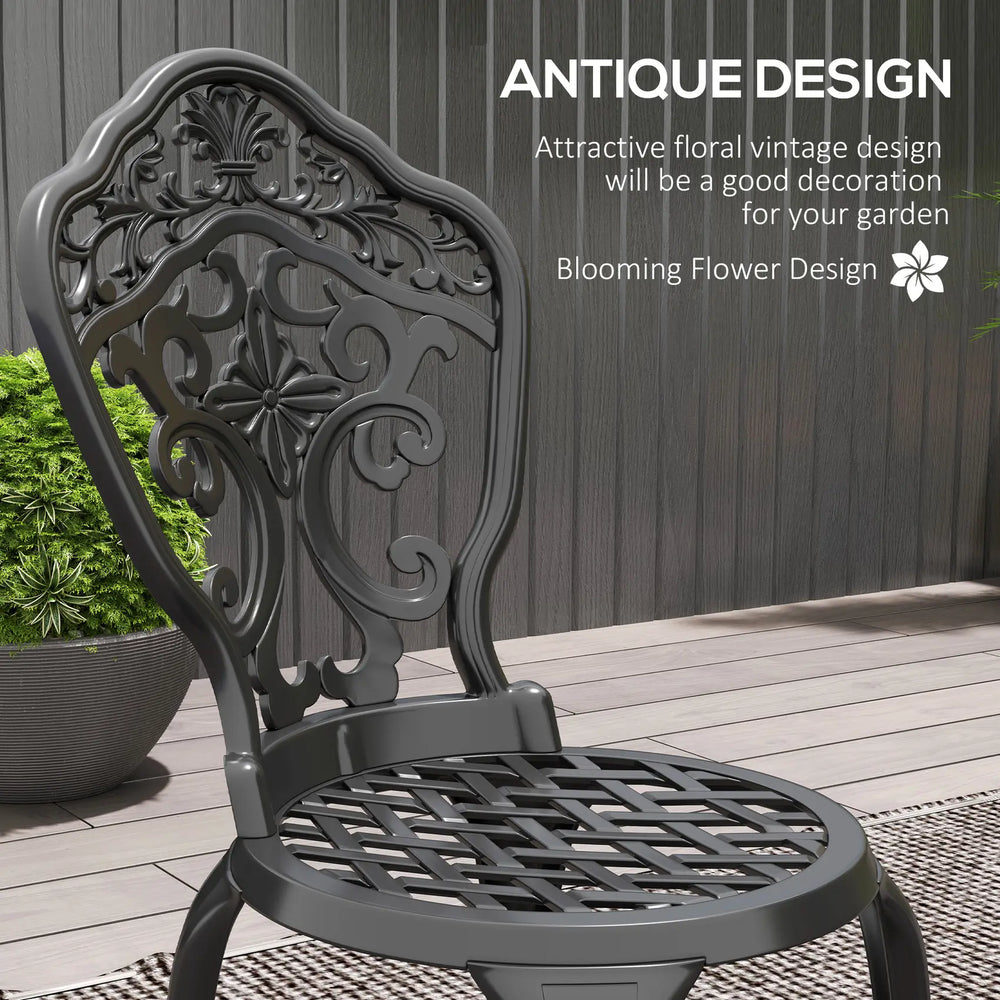 Outsunny Three-Piece Aluminium Floral Bistro Set - Black