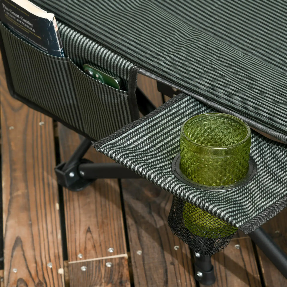Outsunny Foldable Camp Bed, Padded Patio Camping Bed with Carry Bag, Magazine Bag and Cup Holder for Outdoor, Garden, Grey