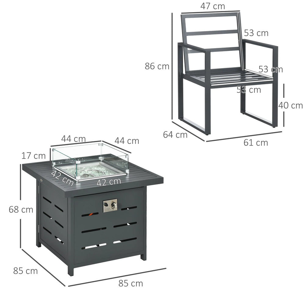 Outsunny 5-Piece Aluminium Garden Furniture Sets, 4 Seater Outdoor Conversational Dining Set with Gas Fire Pit Table Cushions for Yard, Poolside, Patio, Grey