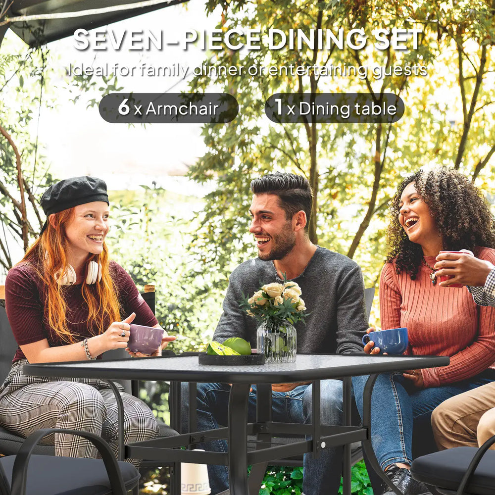 Outsunny Seven-Piece Garden Dining Set with Cushions - Black