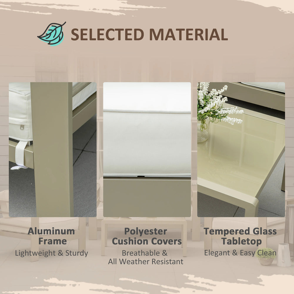 Outsunny 4 Pieces Outdoor Garden Furniture Set, Aluminium Frame Backyard Furniture w/ Thick Padded Cushioned Loveseat, 2 Chairs, and Glass Top Table, Champagne Gold