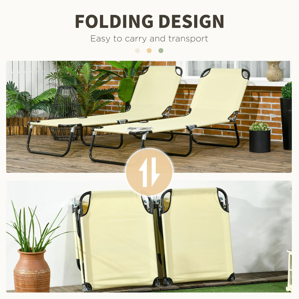 Outsunny Set of Two Metal Frame Folding Sun Loungers - Beige