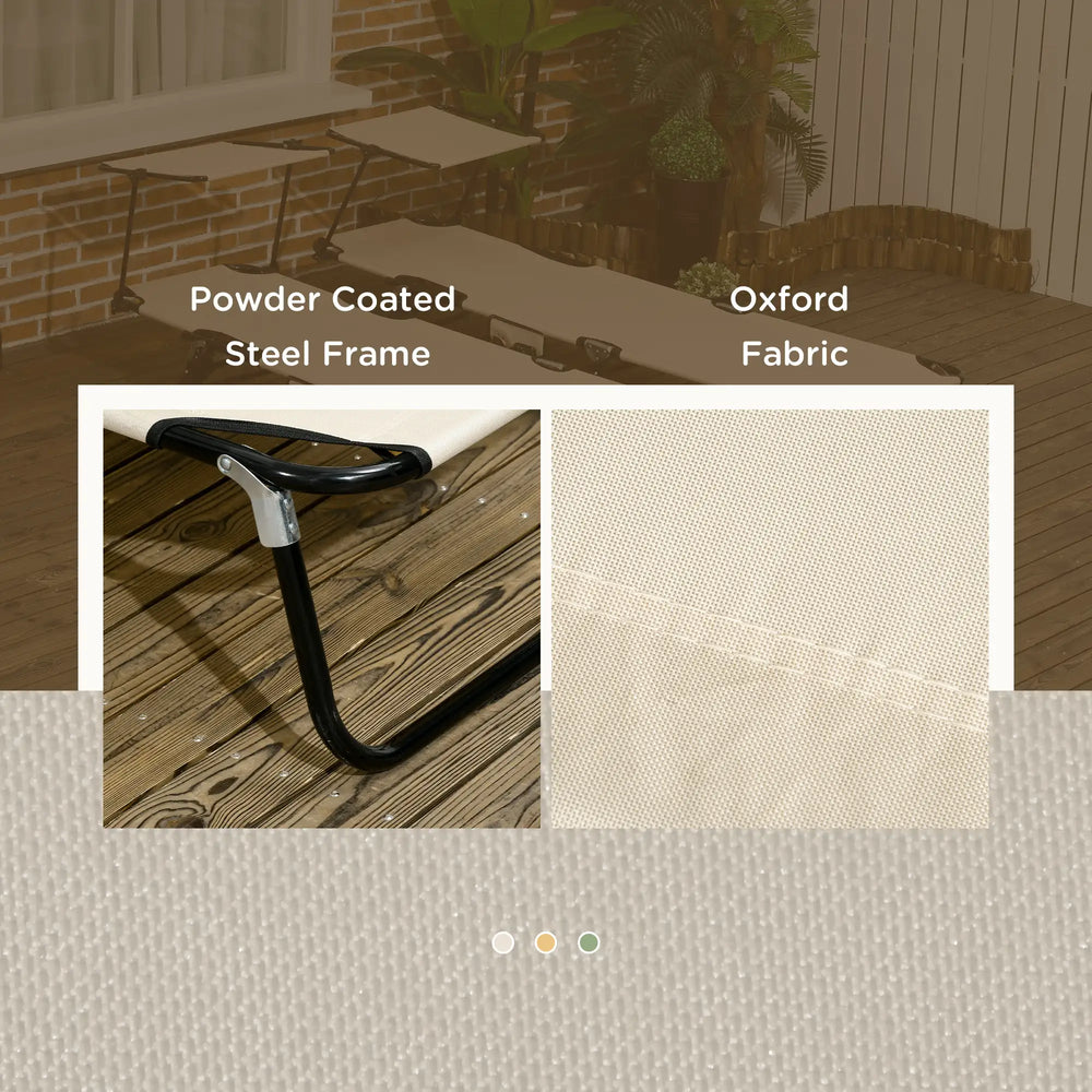 This set of two Outsunny sun loungers means you and a friend can sunbathe outdoors in comfort. Both feature reclining backs - set between the five positions; a sunshade roof - pick the angle you like most. Powder coated steel frames for a strong and supportive core; the folding garden sun loungers can be folded to carry and store easily.