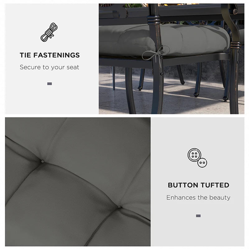Colour meets comfort with this Outsunny cushion set. Filled with thick foam, you'll enjoy sitting outdoors for extended hours. Fabric covers are soft, the tufting adds style. Flame retardant for safety, each cover is resistant to light stains for cleanliness. Complete with tie fastenings to secure to each seat.