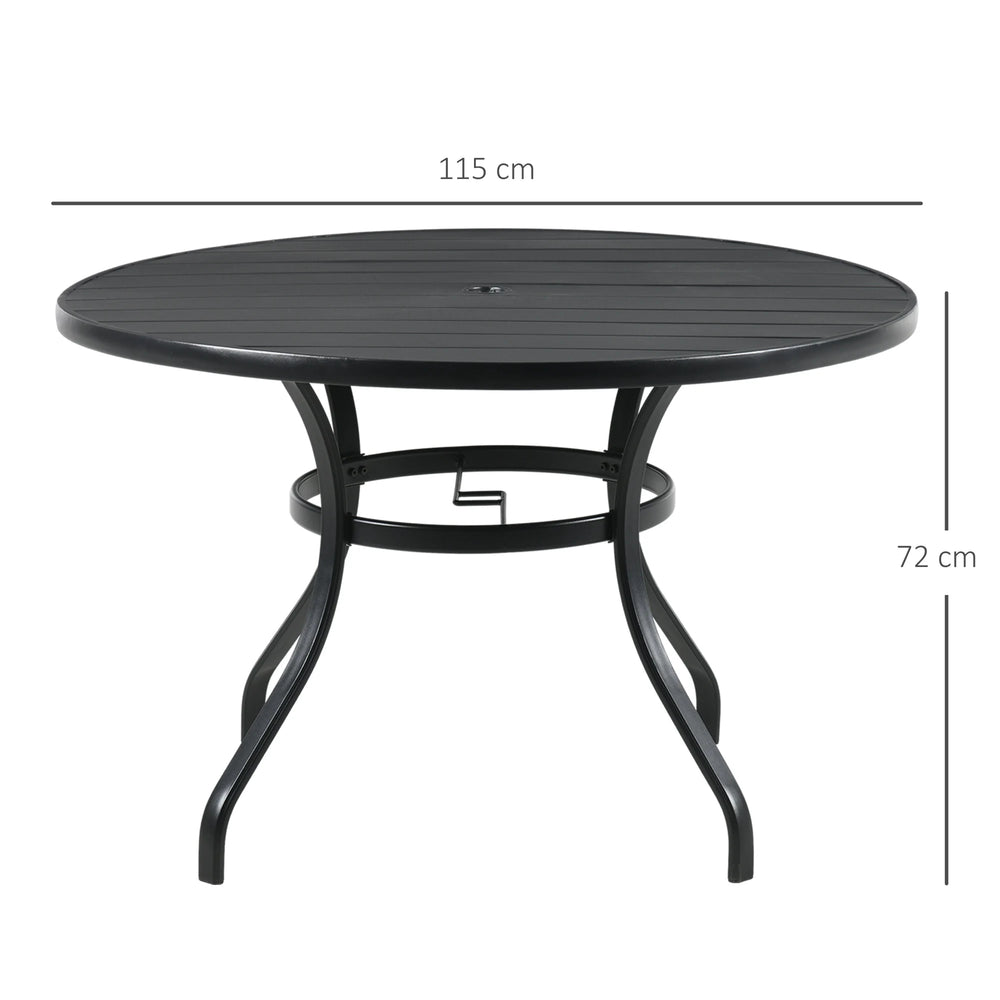 Outsunny Garden Table with Parasol Hole, Outdoor Dining Garden Table for Four Persons, Round Patio Table with Slatted Metal Top, Black