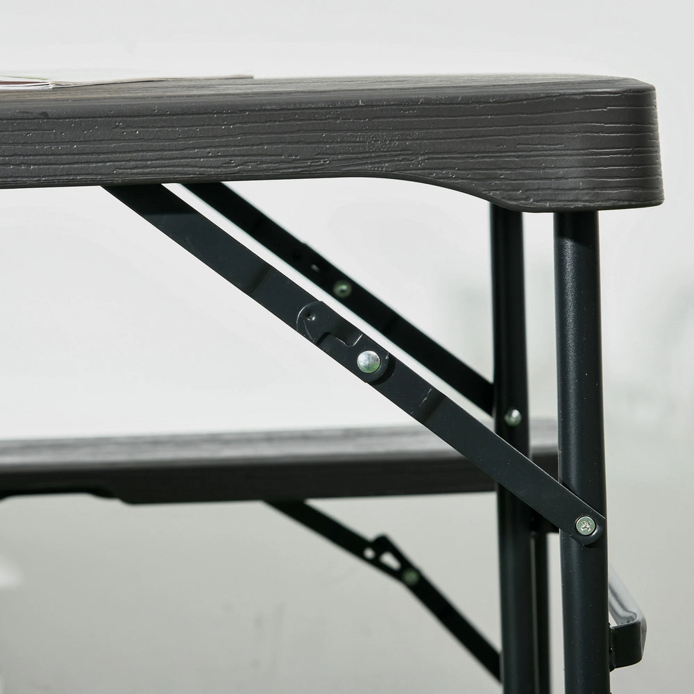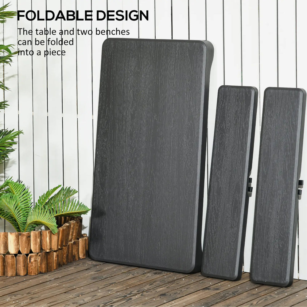 Outsunny Folding Picnic Table with 2 Benches, 3-Piece Portable Garden Furniture Set for 4, Dining Table Set with Plastic Top, Steel Frame, Dark Grey