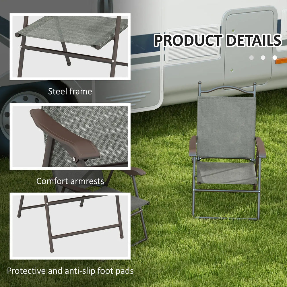 Outsunny Set of Two Folding Garden Chairs, with Fabric Mesh Seats - Dark Grey