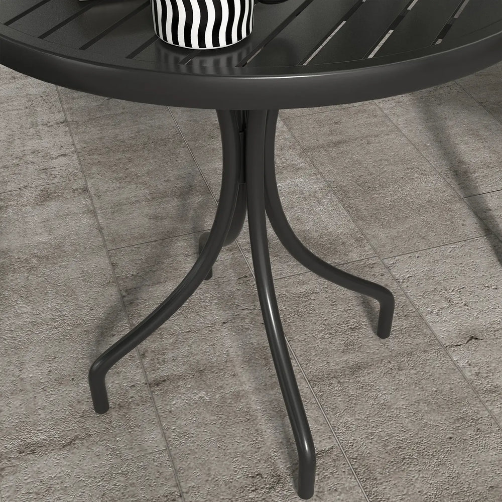 Outsunny 66cm Patio Table, Round Garden Table, Outdoor Side Table with Steel Frame and Slat Tabletop, Black
