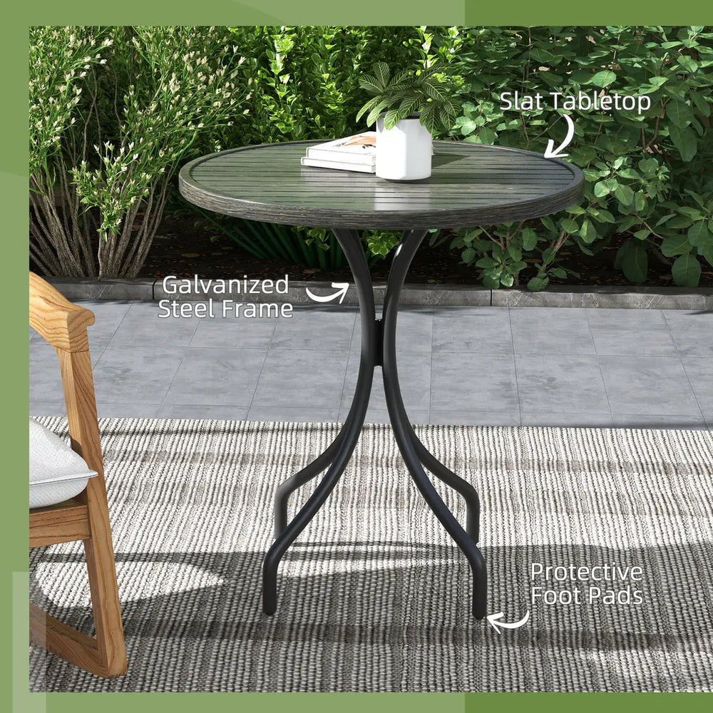 Enhance your outdoors with this Outsunny end table. Slatted tabletop is stylish and practical, preventing water building up and quick drying. The galvanised steel frame, with a powder-coated finish, means a strong and supportive core. This round garden table is suitable for plenty of occasions.
