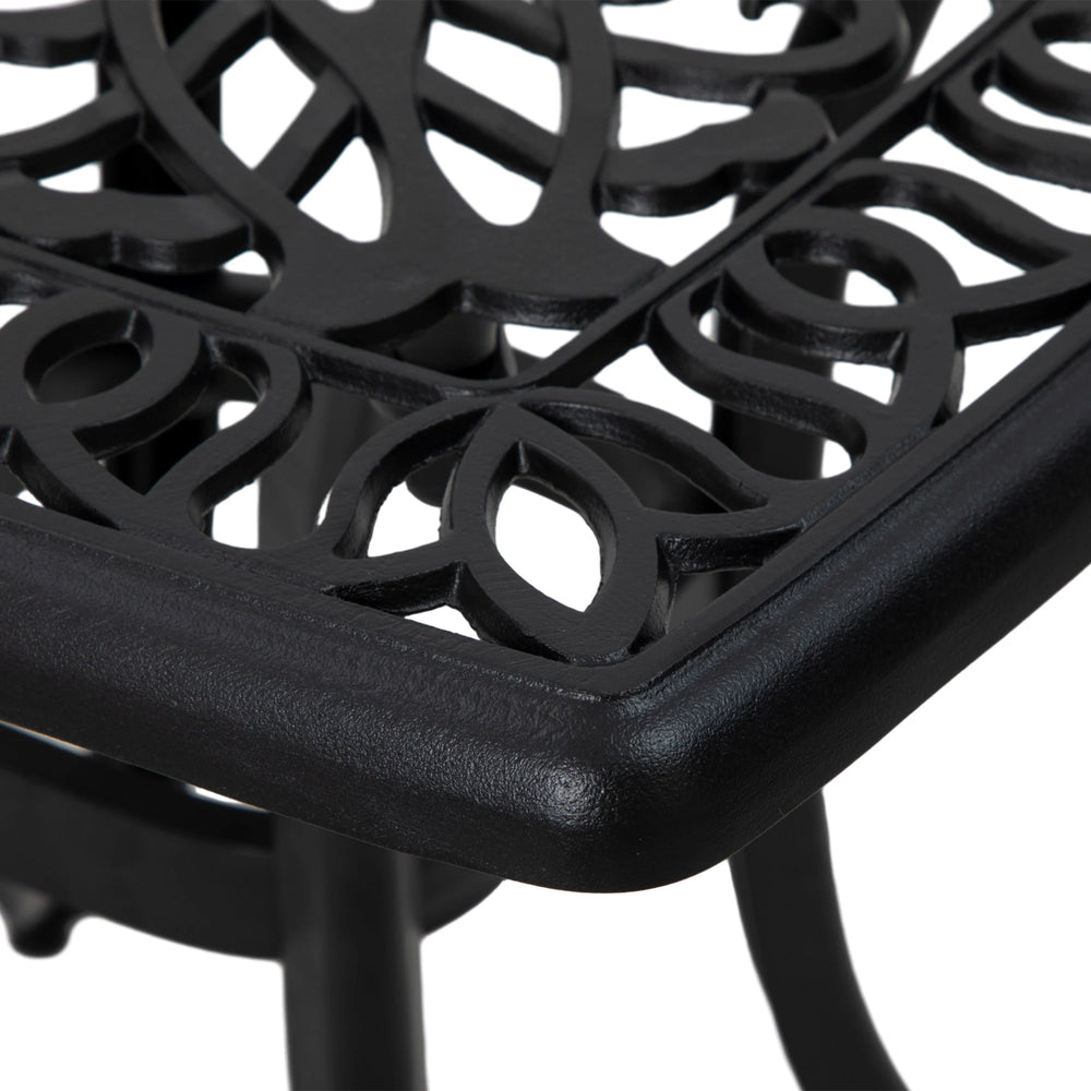 Outsunny Cast Aluminium Bistro Table, Outdoor Square Side Table with Umbrella Hole, Garden Table for Balcony, Black is backordered and will ship as soon as it is back in stock.