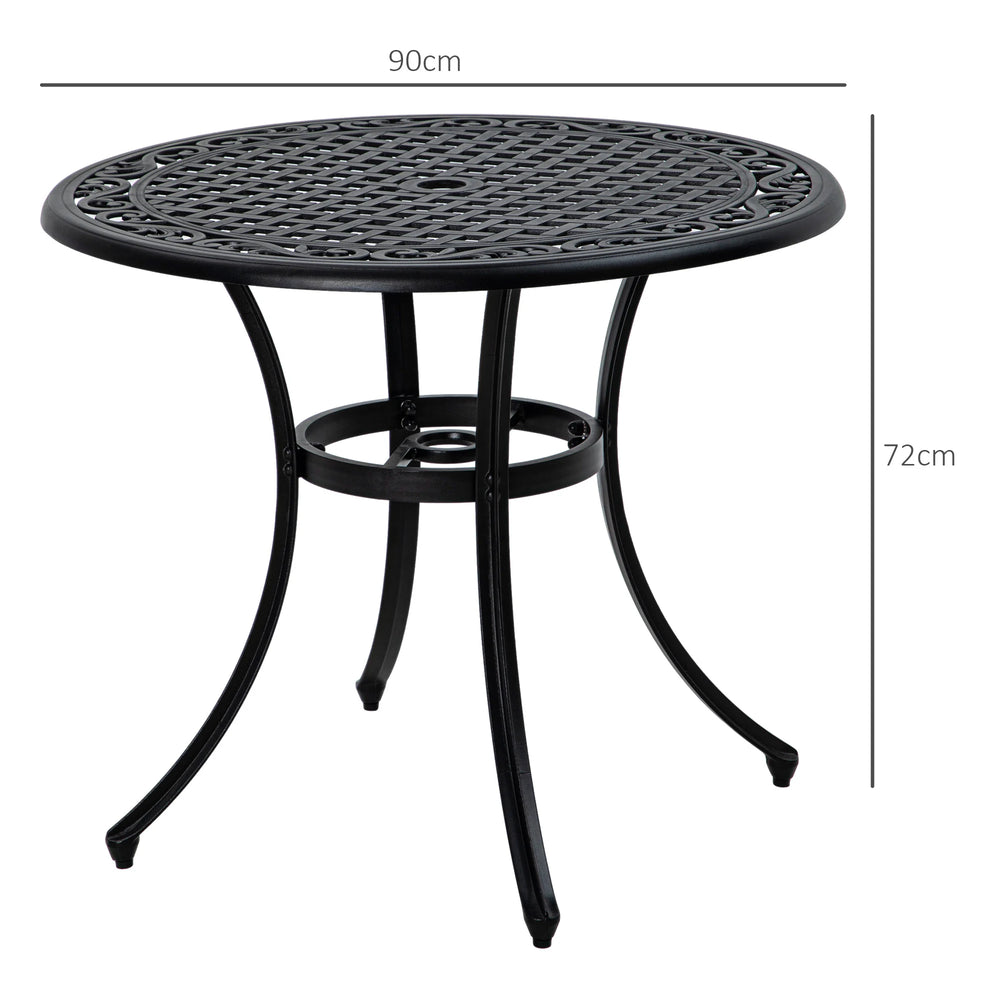 Outsunny 90cm Four-Seated Round Aluminium Garden Table, with Parasol Hole