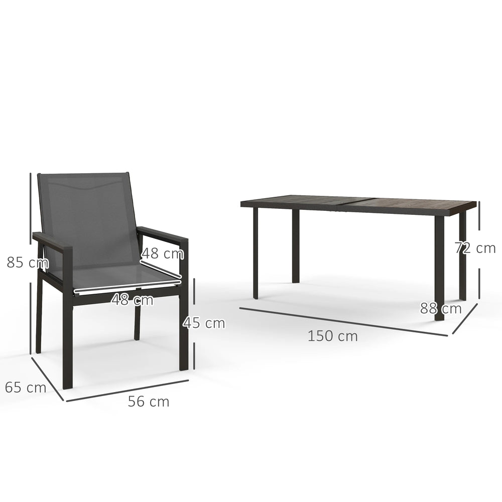 Outsunny Seven-Piece Metal Dining Set, with Glass-Top Table - Grey