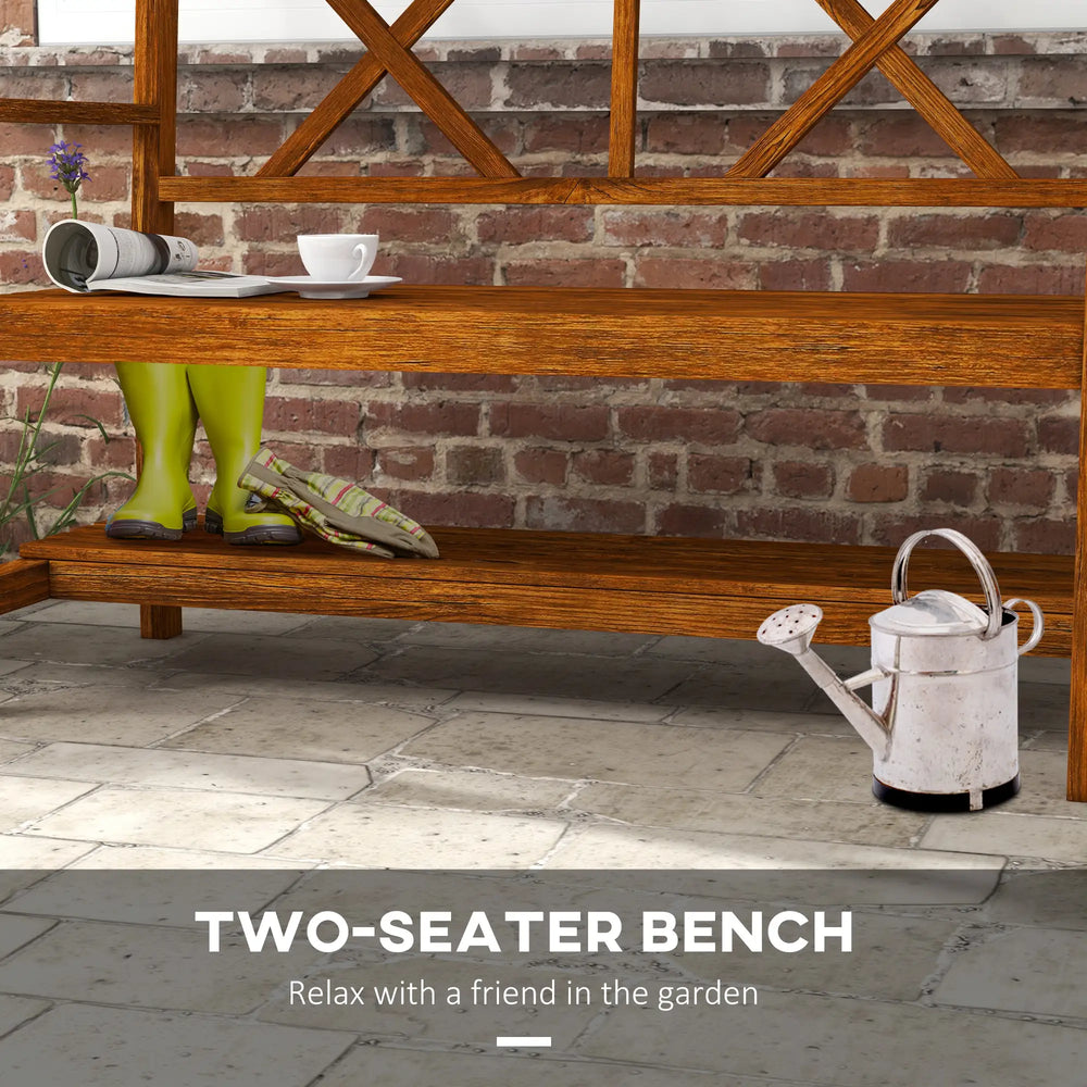 Outsunny Two-Seater Fir Wood Bench, with Bottom Shelf - Natural