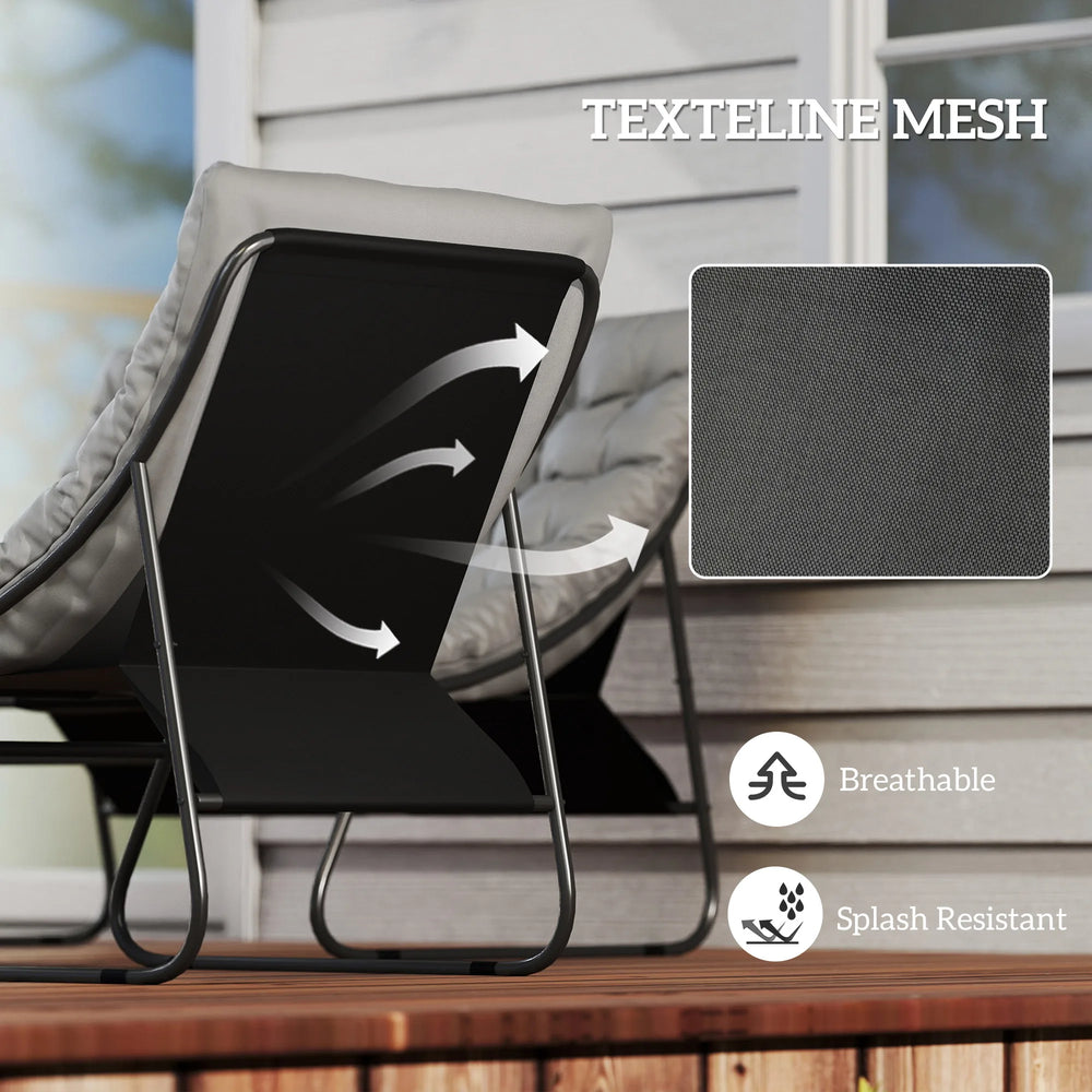 - Smooth curved seats: Keep comfortable as you lie back and relax on the chairs and sofa in this outdoor furniture set. Padded cushions are soft, covered in breathable texteline mesh, to sink in gently all afternoon long.
