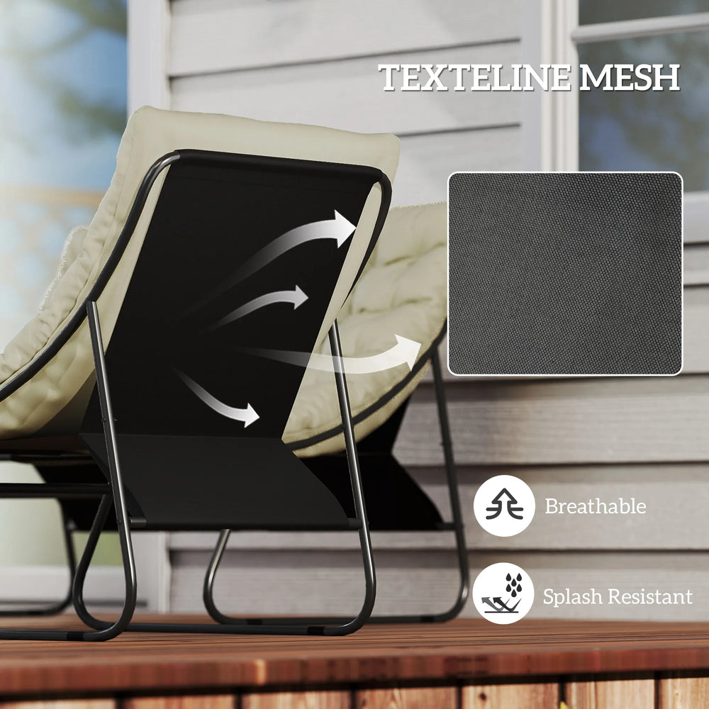 - Smooth curved seats: Keep comfortable as you lie back and relax on the chairs and sofa in this outdoor furniture set. Padded cushions are soft, covered in breathable texteline mesh, to sink in gently all afternoon long.