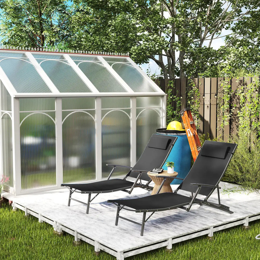 Outsunny Set of Two Adjustable Back Sun Loungers - Black