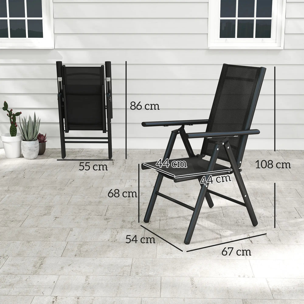 Outsunny Set of 2 Folding Garden Chairs, Aluminium Frame Outdoor Dining Chairs with Breathable Mesh Back and Seat, Garden Folding Chair Set with Armrests for Balcony, Black