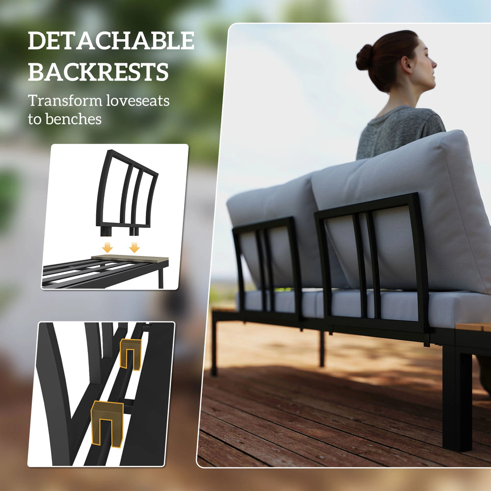 - Versatile sectional design: Our four piece garden sofa set features two loveseats and two coffee tables. Whether you prefer an L-shaped layout or a straight setup, this set adapts to your needs. Transform loveseats to benches by removing backs