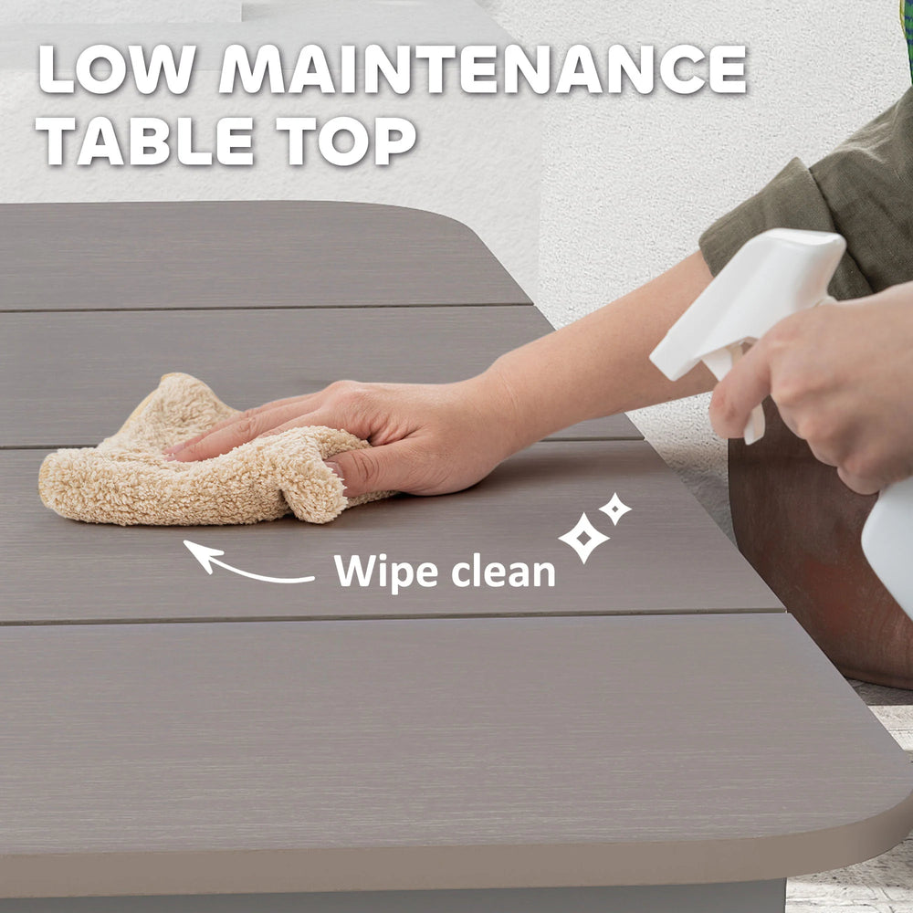 Gather round this Outsunny garden dining table, designed to seat six comfortably. Featuring a robust metal frame with a sleek powder-coated finish and crafted from wood plastic composite, it's not only weather-resistant but also a breeze to clean. Its modern minimalist style effortlessly enhances any garden setting, making it your go-to for outdoor gatherings.