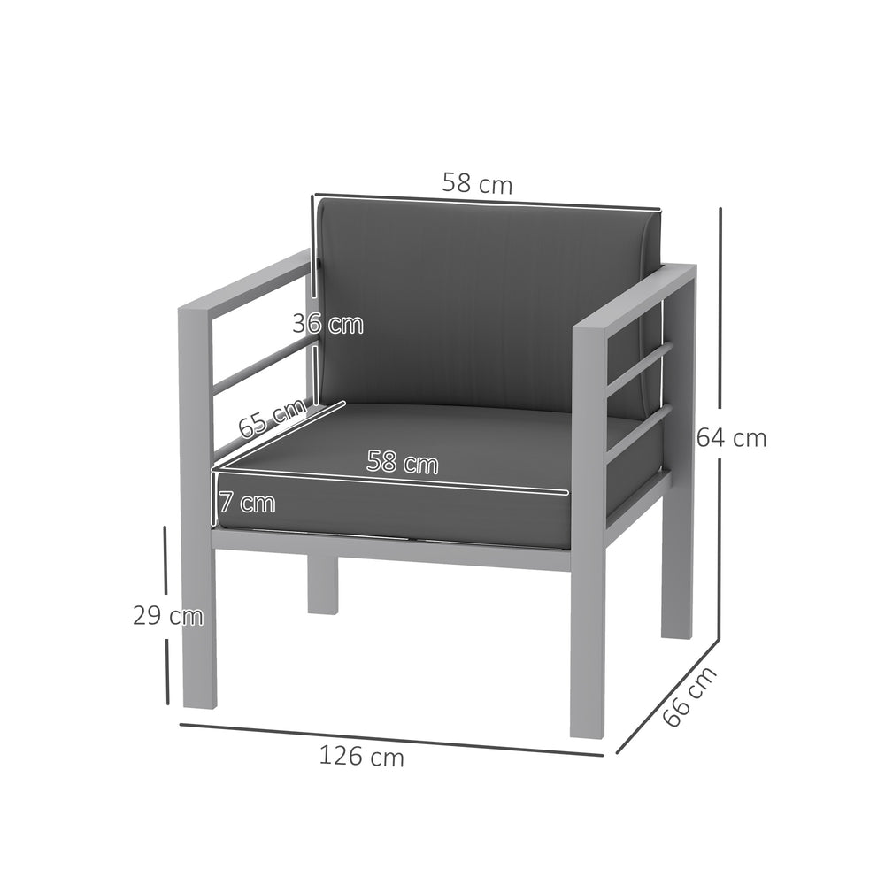 Outsunny Garden Sofa, All-Weather Garden Single Sofa with Removable Cushions, Metal Frame Outdoor Furniture for Balcony, Charcoal Grey