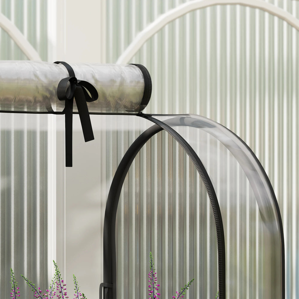 - Raised planter with cover: Allows sunlight to pass through, creates a safe shield for plants. Roll-up door for easy access.