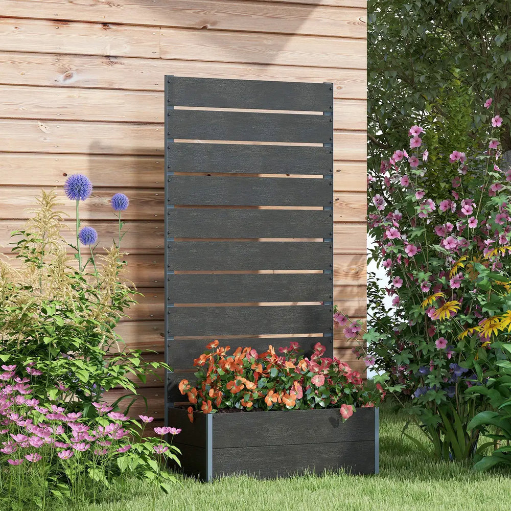 This Outsunny garden planter does more: it comes with a slat trellis back for climbing plants and vines - and even doubles as a privacy screen, making it suitable for balconies, patios or any outdoor space where a little seclusion is welcome. An aluminium frame ensures a strong structure, fitted with wood-plastic boards that are weather-resistant. The outdoor planter is built to last, offering a versatile and thriving garden space - with both function and style - wherever you place it.