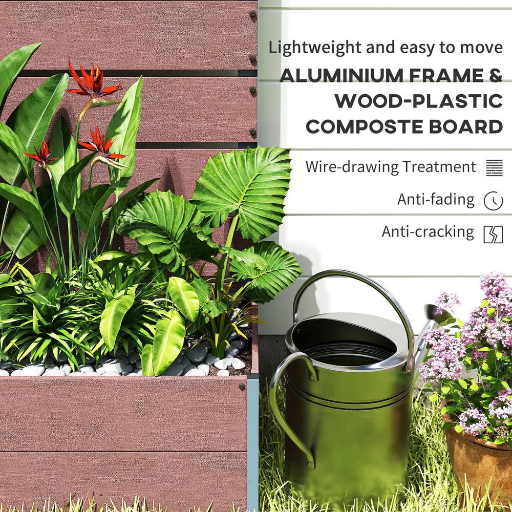 This Outsunny garden planter does more: it comes with a slat trellis back for climbing plants and vines - and even doubles as a privacy screen, making it suitable for balconies, patios or any outdoor space where a little seclusion is welcome. An aluminium frame ensures a strong structure, fitted with wood-plastic boards that are weather-resistant. The outdoor planter is built to last, offering a versatile and thriving garden space - with both function and style - wherever you place it.