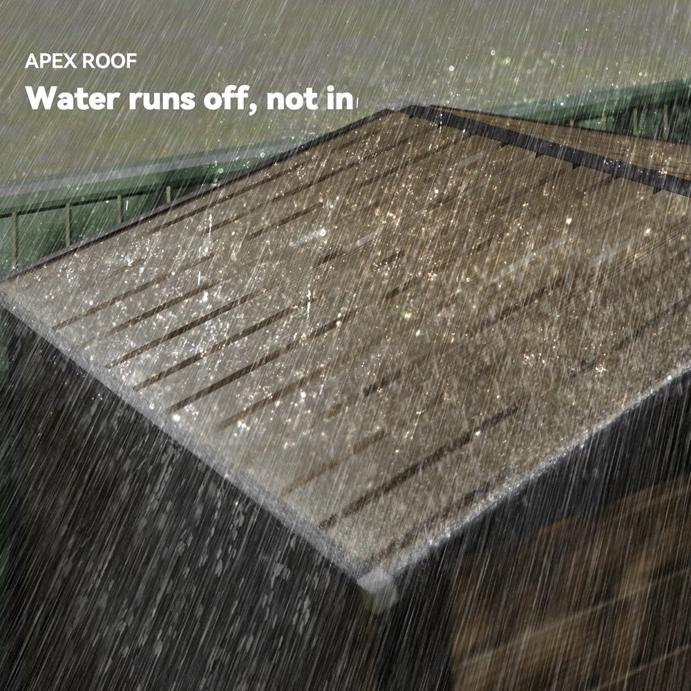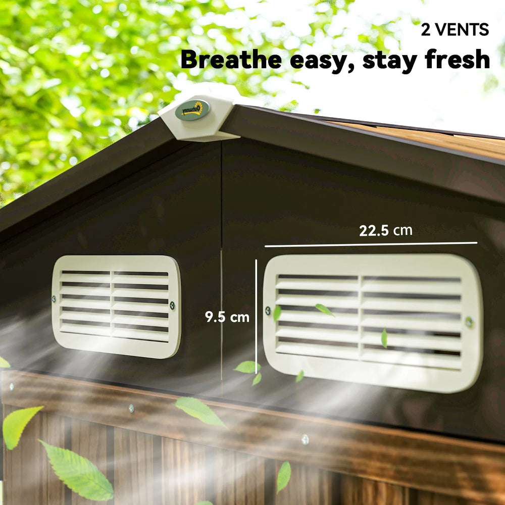 - Two ventilation slots: Brings air inside this outdoor shed, helps prevent odour and keeps tools and equipment dry.