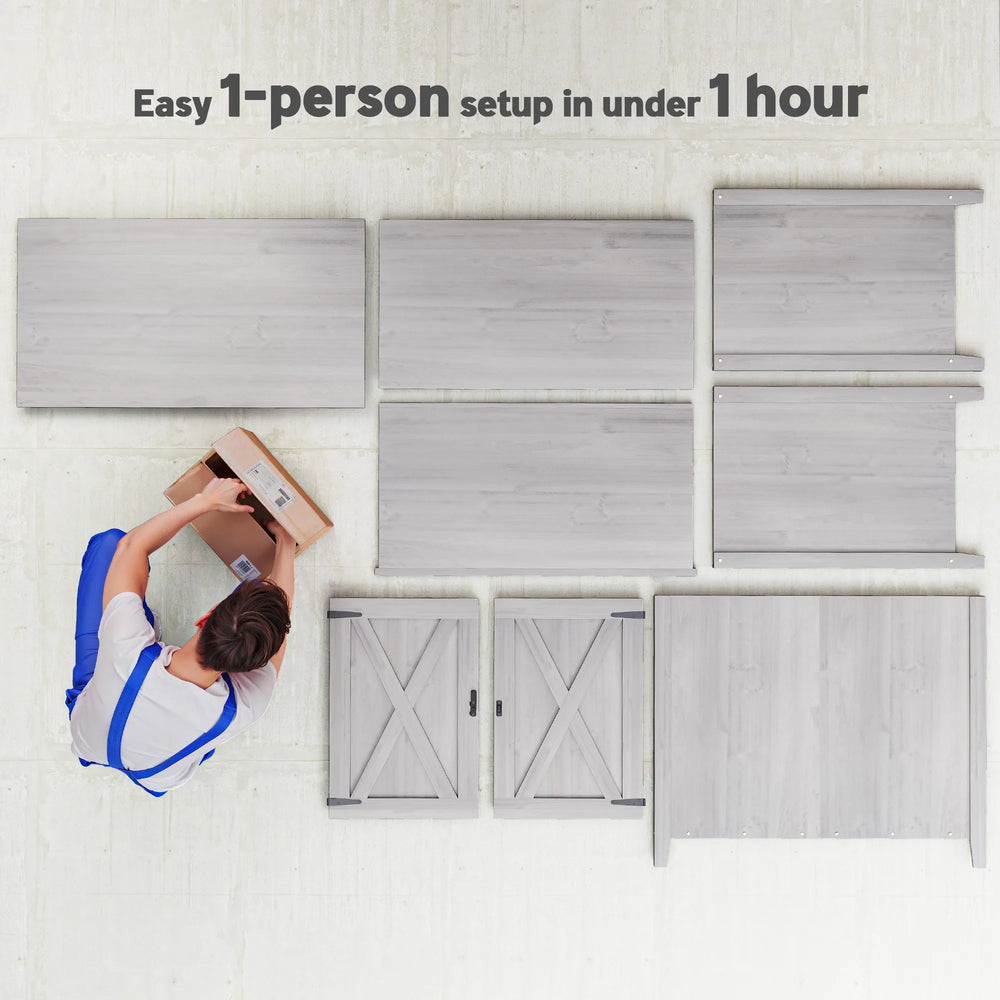 - Secure and stylish: Keep your garden tools secure with a latch and enjoy the esthetic appeal of barn doors on this wood shed, adding charm to your outdoor area.