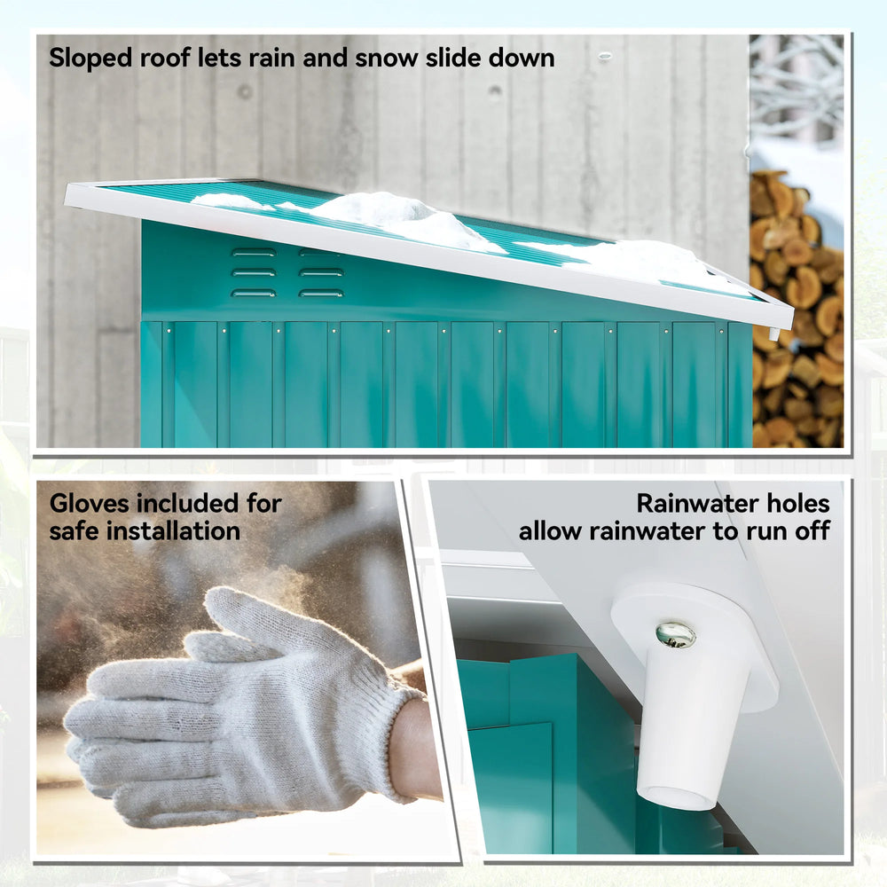 - 204 x 108cm inner storage: Metal garden shed has plenty of space for provides keeping garden tools, outdoor equipment and more in one sheltered spot.