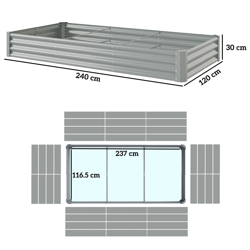 Outsunny 240 x 120cm Galvanised Steel Open Planter - Silver