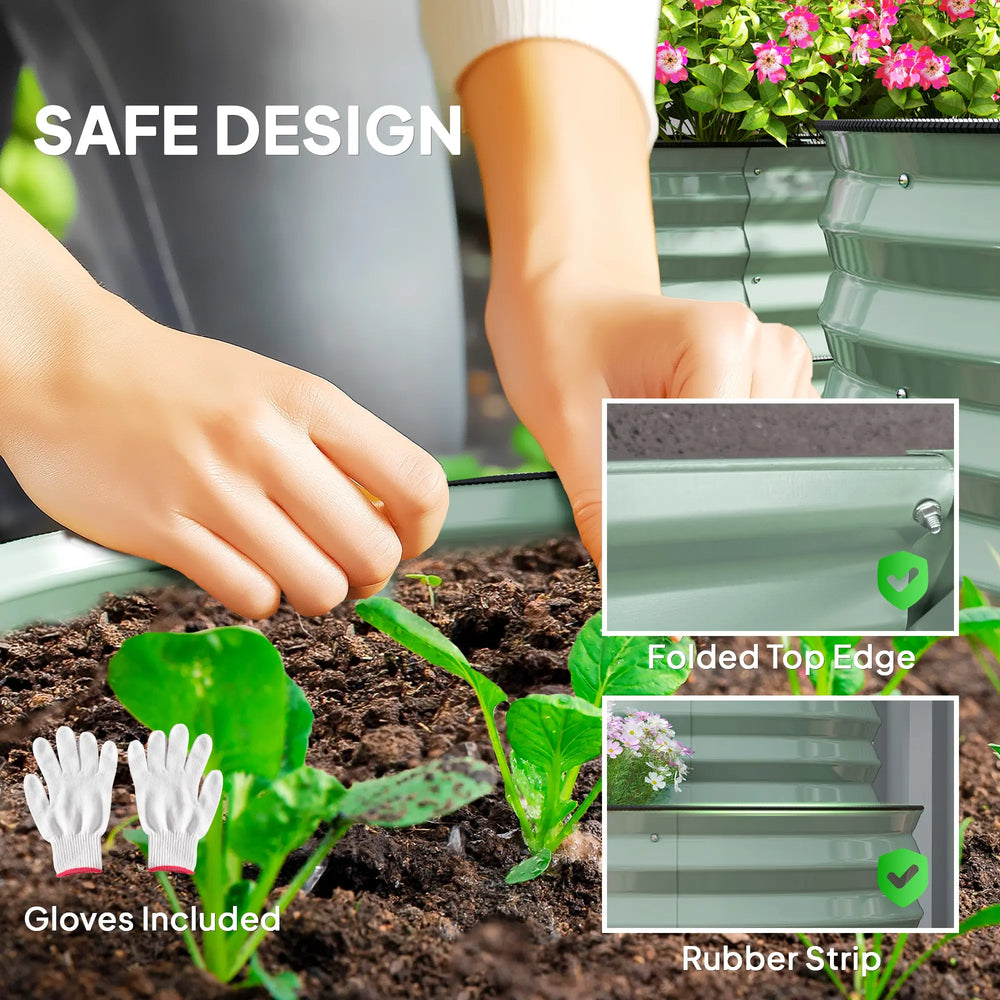 Outsunny Two-Tier Galvanised Steel Garden Planter - Light Green