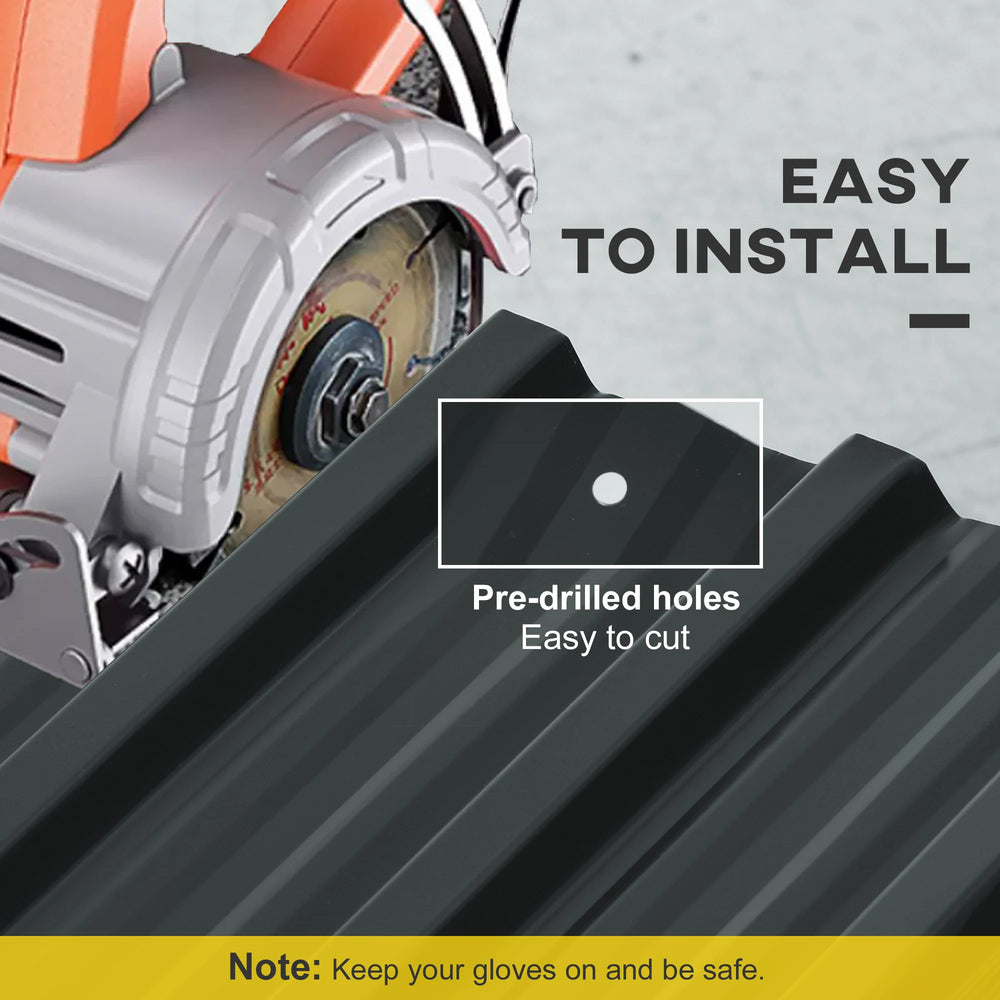 Outsunny Corrugated Roofing Sheets, Pack of 24, Galvanised Metal Roofing Sheets for Greenhouse, Garage, Storage Shed, Carport, 129 x 45cm, Dark Grey
